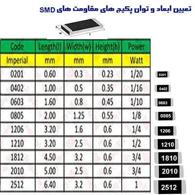 سایز پکیج : ابعاد فیزیکی مقاومتSMD که در پکیج های متفاوتی در بازار عرضه می شوند:
